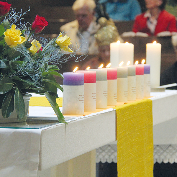Auch heuer lud die Pfarrgemeinde wieder jene Ehepaare zu einem gemeinsamen Gottesdienst ein, die in diesem Jahr ein rundes Ehejubiläume gefeiert haben oder noch feiern werden. Ihre 25-jährige, 50-jährige und 60-jährige Partnerschaft wurde von Kurat Andreas Altrichter und Diakon Andreas Neubauer erneut gesegnet. Die Goldhaubenfrauen gestalteten für jedes Paar Kerzen und luden im Anschluss an den Gottesdienst zur Agape.