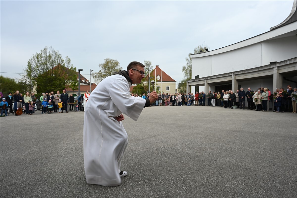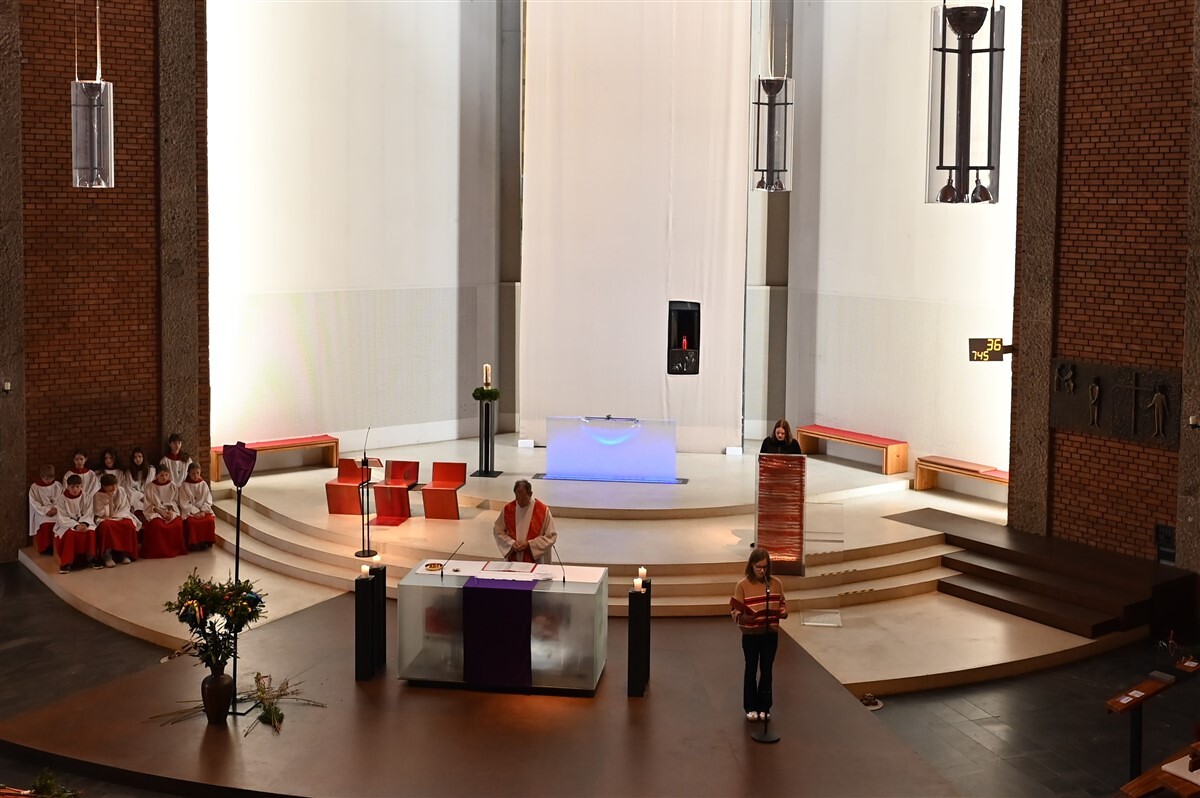 Mit der Segnung der Palmzweige, die ein Zeichen für neues und aufkeimendes Leben sind, war der Wunsch verbunden, Segen und Frieden in unsere Häuser und Wohnungen zu tragen. Die Minis und Kindergartenkinder mit ihren Pädagoginnen brachten mit ihren Liedern und Texten zum Ausdruck, dass Jesus durch sein Handeln die Menschen geheilt und damit ihr Leben hell gemacht hat.