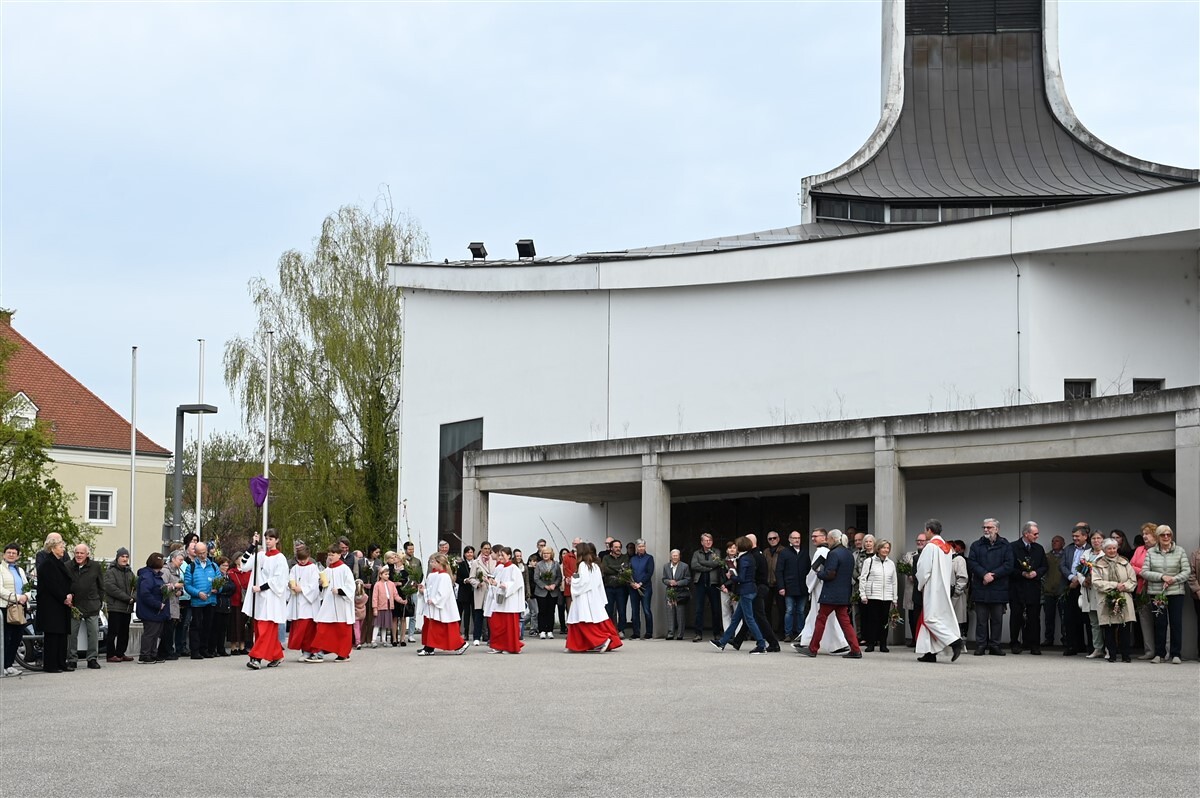 Der besondere Dank gilt dem Eine – Welt – Kreis für das Binden und den Verkauf vieler schöner Palmbuschen gemeinsam mit fair gehandelten Produkten, den Kindergartenkindern mit den Pädagog:innen und den Minis für die Mitgestaltung der Palmweihe, dem Team des Kinderwortgottesdienstes, den Lektor:innen der Passionsgeschichte und allen Mitwirkenden für die Gestaltung der Liturgie zum Palmsonntag.