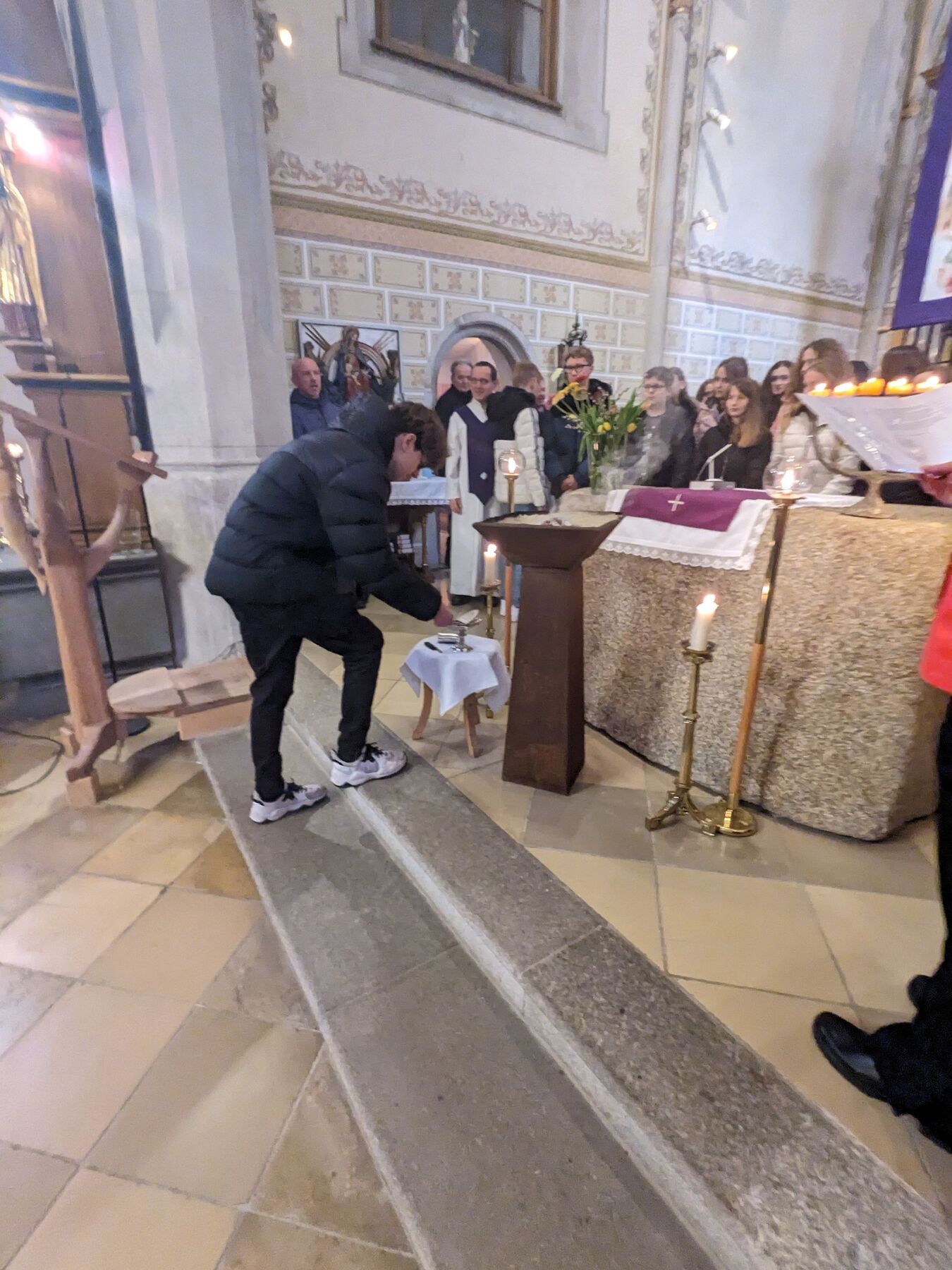 Alle Kinder und Jungscharkinder waren beim Abschlusssegen voll in “action” rund um den Altar dabei. Beim sogenannten Mitmachsegen baten wir um Gottes Segen, speziell auch für den anschließenden Jungscharausflug ins Jump Dome - damit alle Knochen heil blieben!