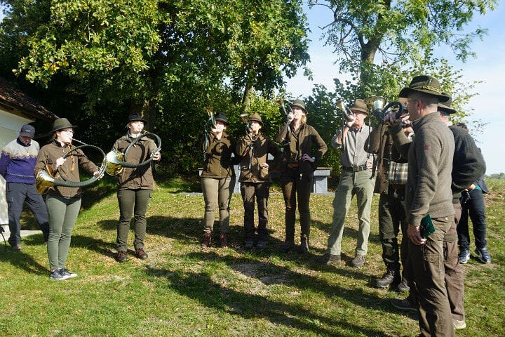 Schon von der Ferne hören wir die Klänge der Jagdhornbläsergruppe Schaunburg - eine ganz besondere musikalische Umrahmung.